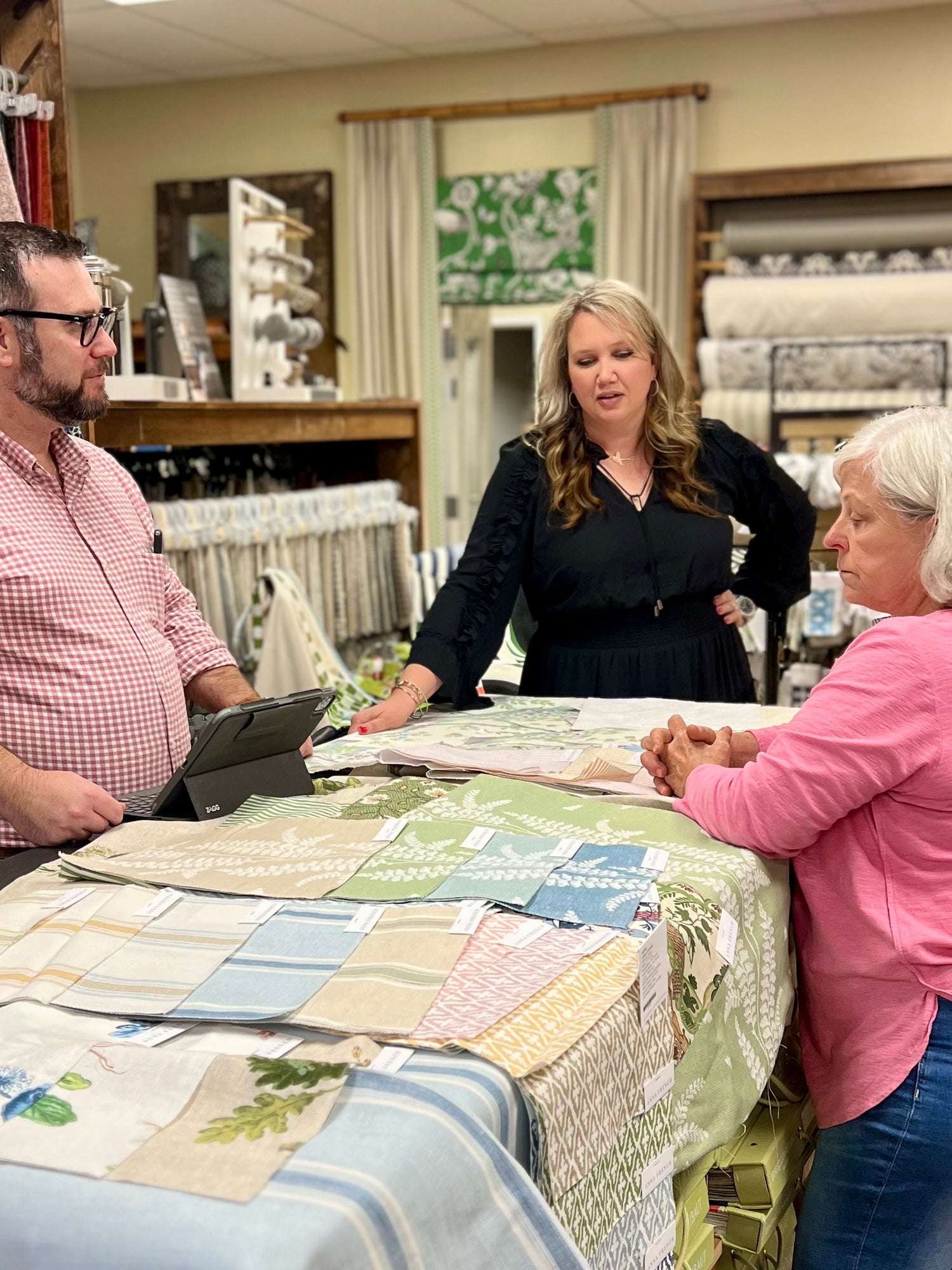 Our expert design team is here to guide you every step of the way. We will help you choose the perfect fabrics, trims, and wall coverings as well as order samples, if needed.